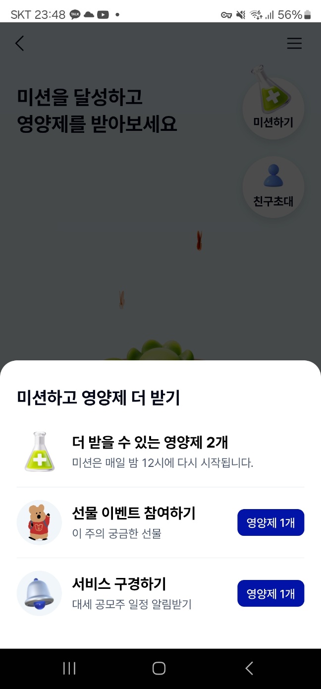 - 영양제 아이템은 미션 달성 시 지급되며, 케이뱅크 돈나무 성장 가속화에 핵심!