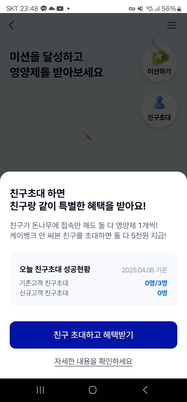 - 친구 초대 시 추가 포인트 적립, 케이뱅크 돈나무 보너스 보상!